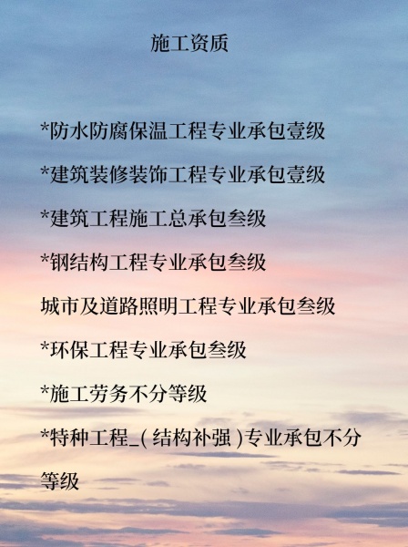 公司多項一級施工資質,CA鎖齊全!招投標開票走款,人員配置齊全,業績多而廣,業務成熟,能給您精準把控,少走彎路!標書預算,資質合作,項目施工,您需要的我們都有。優質的服務,高效的辦公效率,歡迎合作!