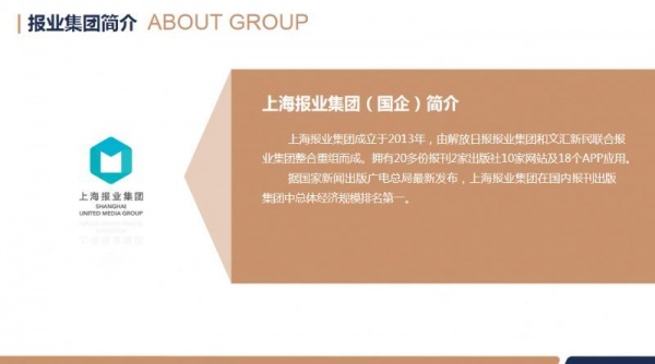 上海報業集團成立于2013年,由解放日報報業集團和文匯新民聯合報業集團整合重組而成。擁有20多份報刊2家出版社10家網站及18個APP應用。
